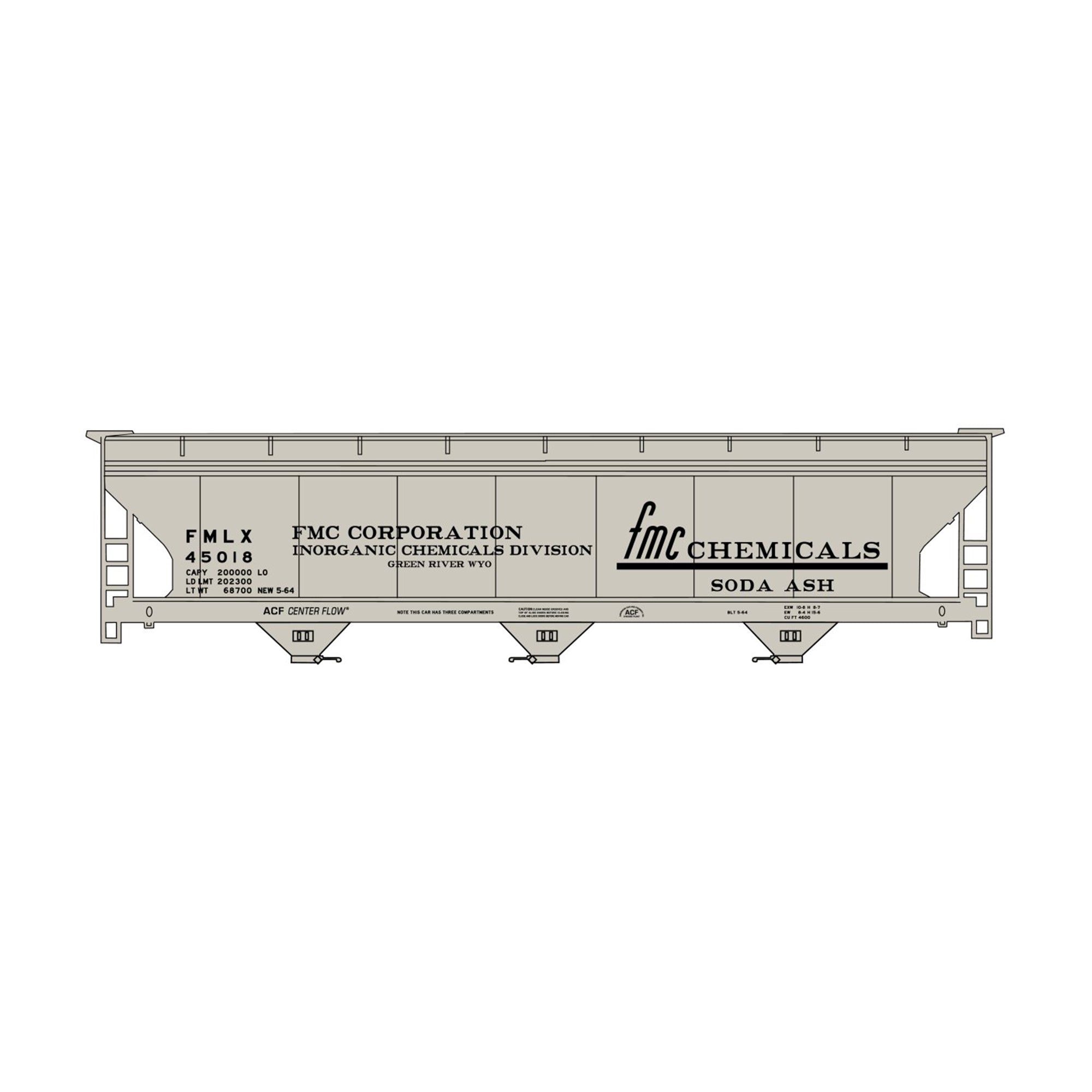 Accurail 2120 HO 3-Bay ACF Covered Hopper Kit, FMC Chemicals #45018