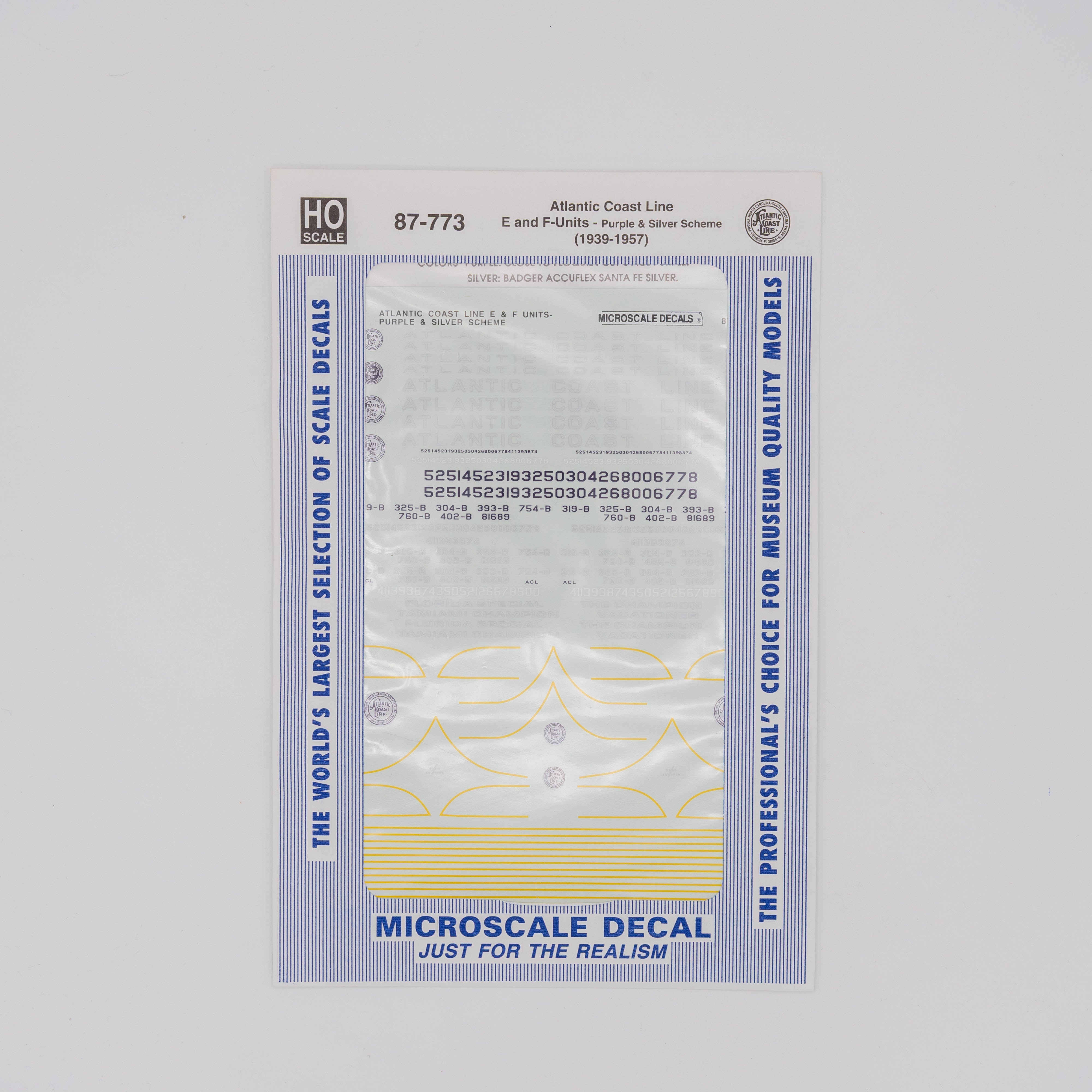 Microscale HO 87-773 Atlantic Coast Line Decal, E and F-Units Purple & Silver Scheme (1939-1957)