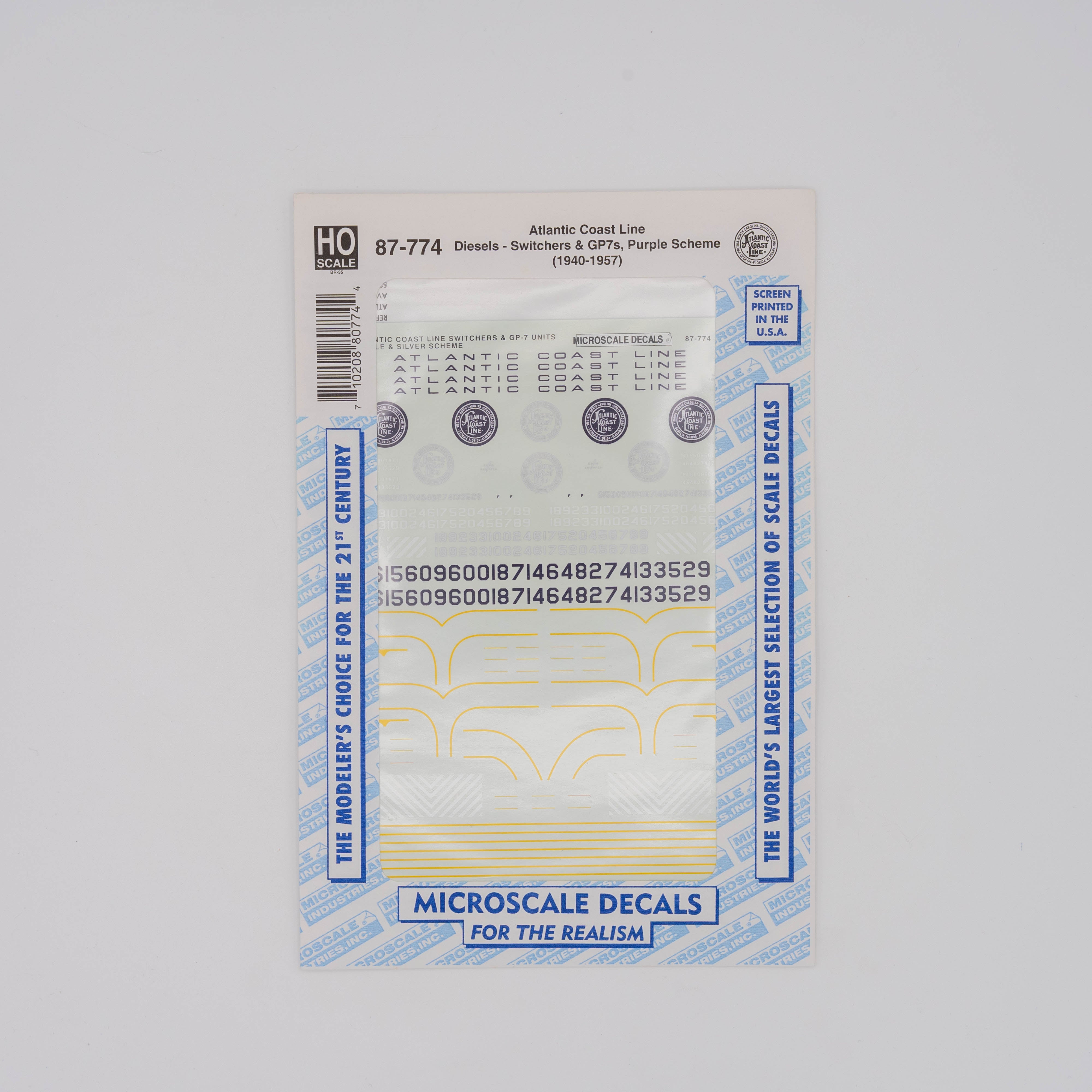 Microscale HO 87-774 Atlantic Coast Line Decal, Diesels - Switchers & GP7s Purple Scheme (1940-1957)