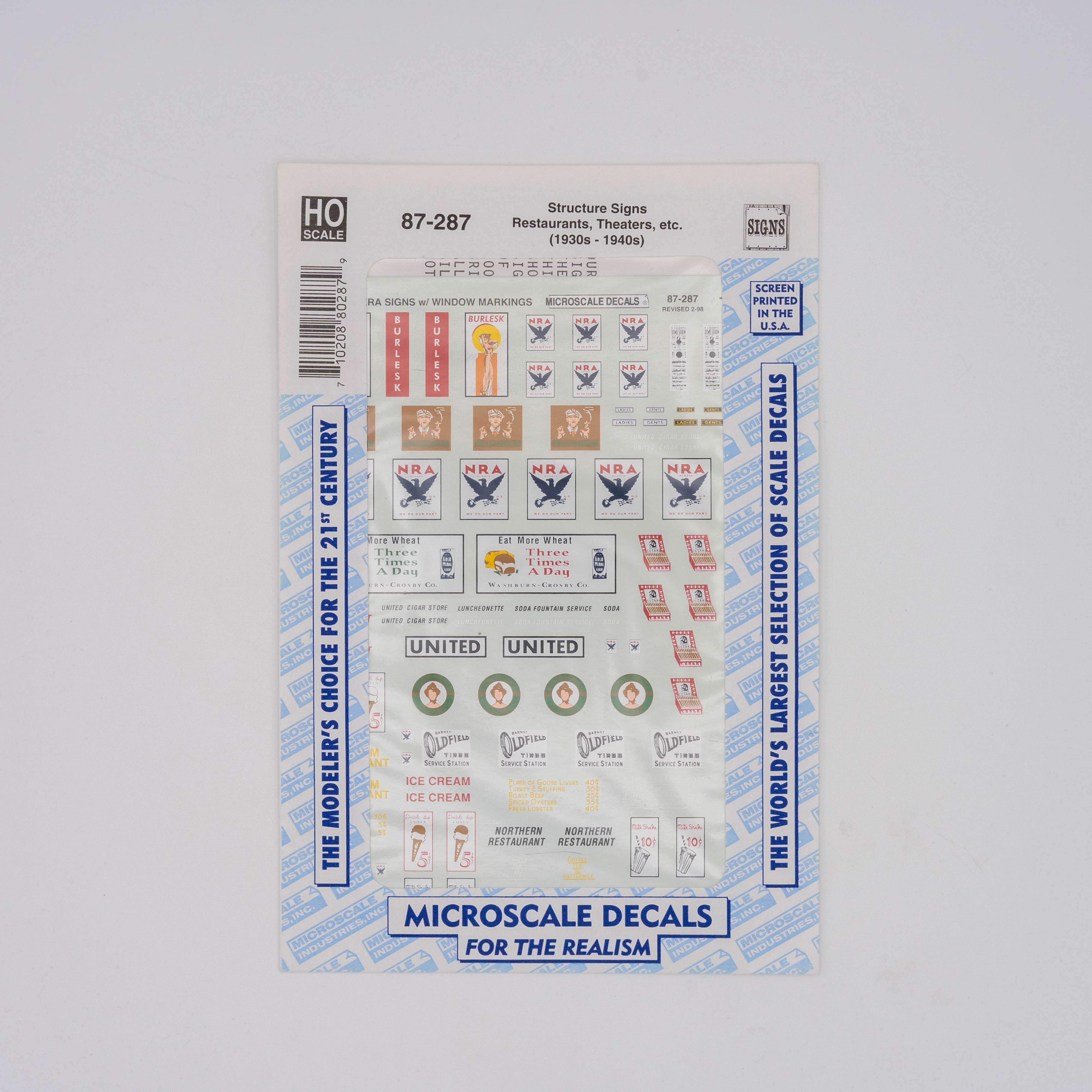 Microscale HO 87-287 Decal, Structure Signs Restaurants, Theaters, etc (1930s-1940s)