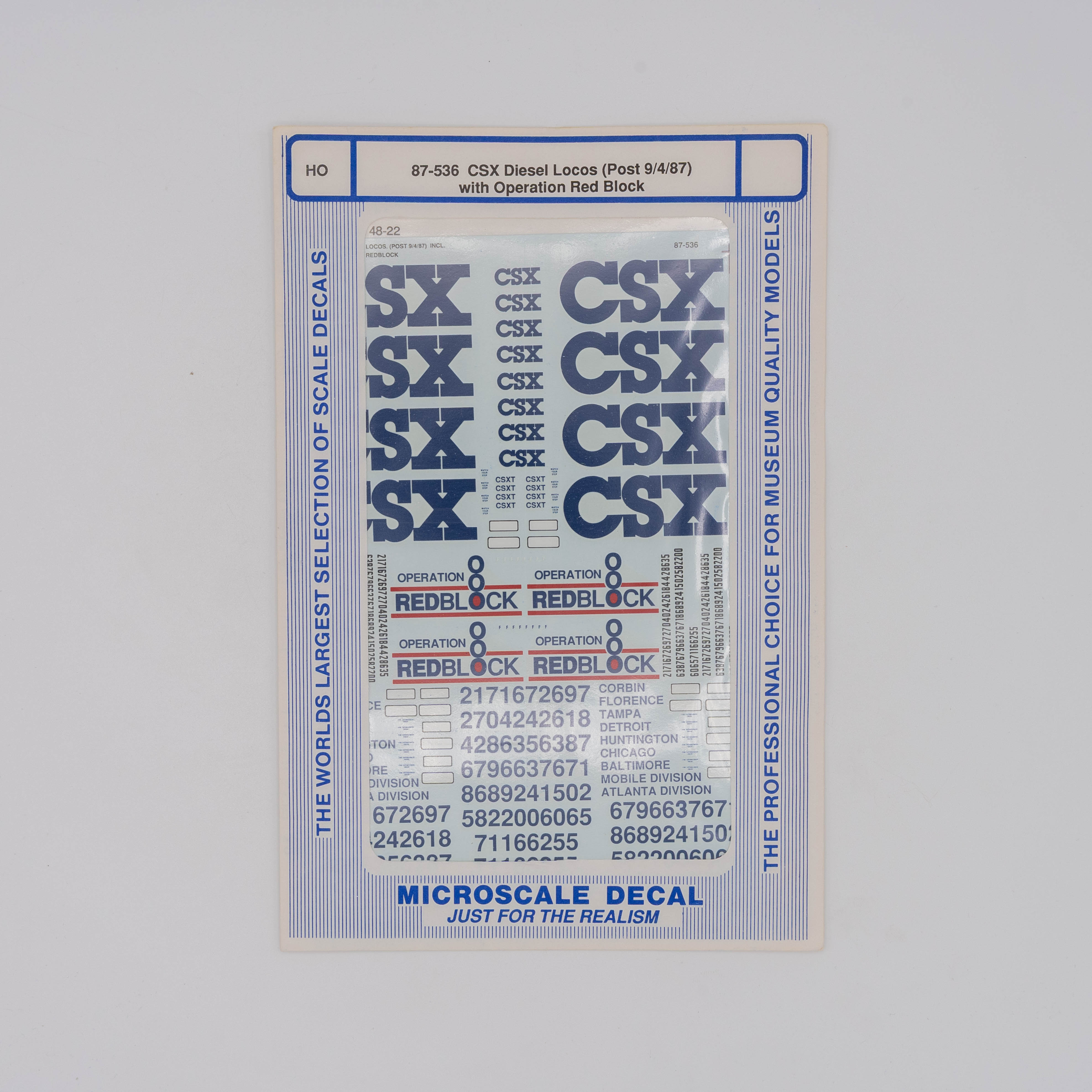 Microscale HO 87-536 CSX Decal, Diesel Locos with Operation Red Block (Post 9/4/87)