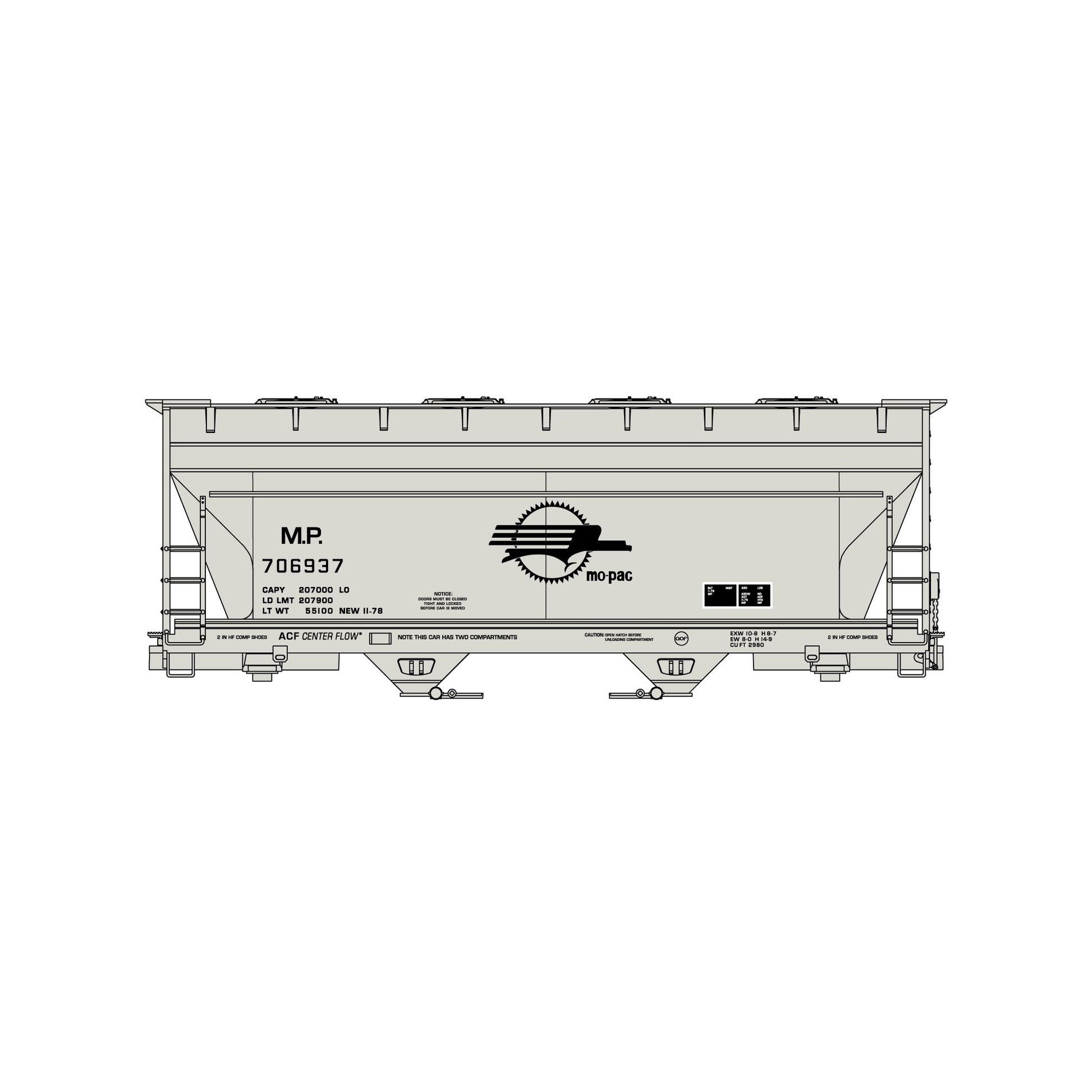 Accurail 2215 HO 2-Bay ACF Covered Hopper Kit, Missouri Pacific #706937