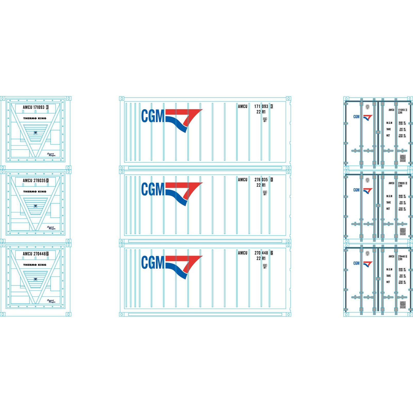 Athearn ATH28886 HO 20' Reefer Container, CGM 3pk