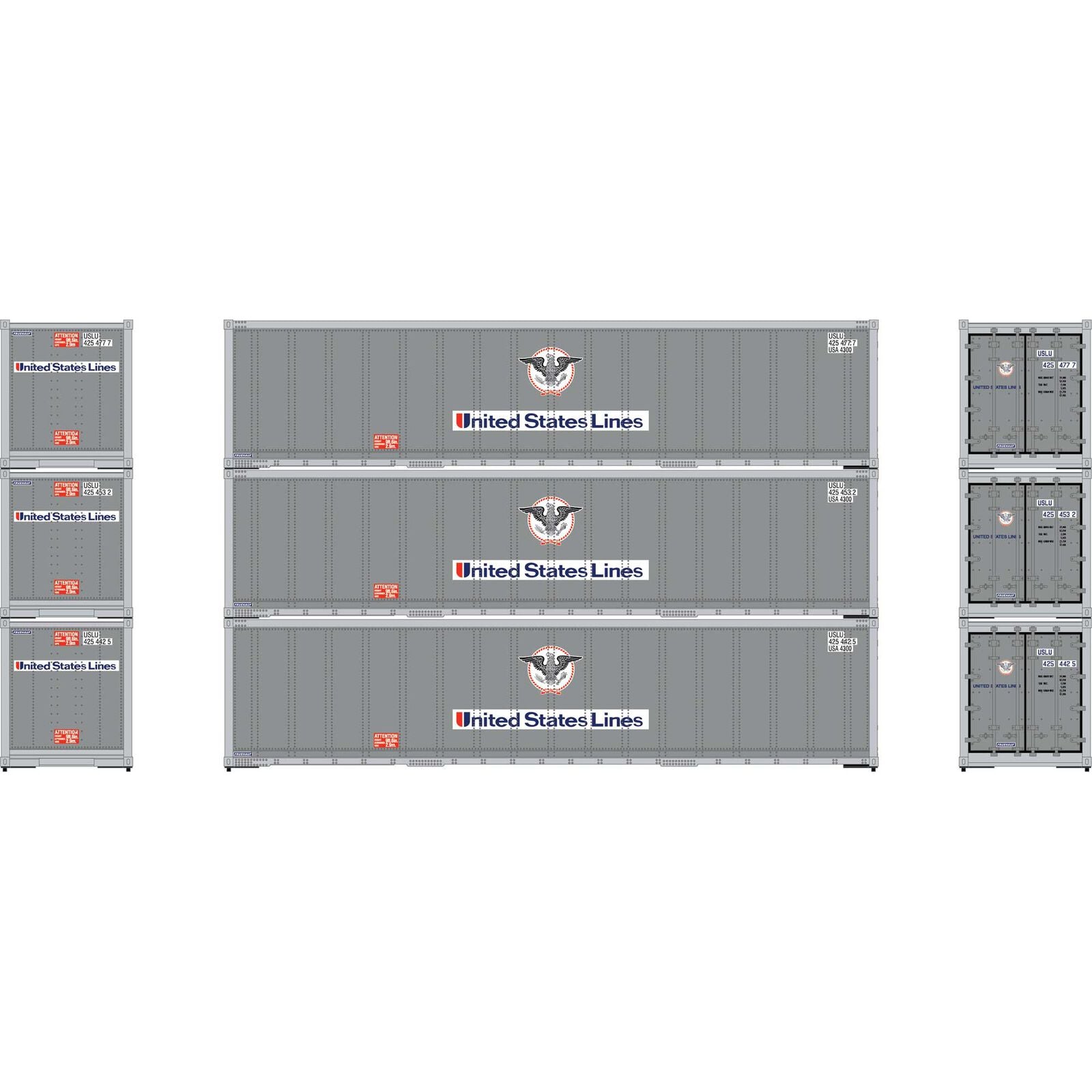 Athearn ATH63390 HO 40' Smooth Side Container, United States Lines 3pk