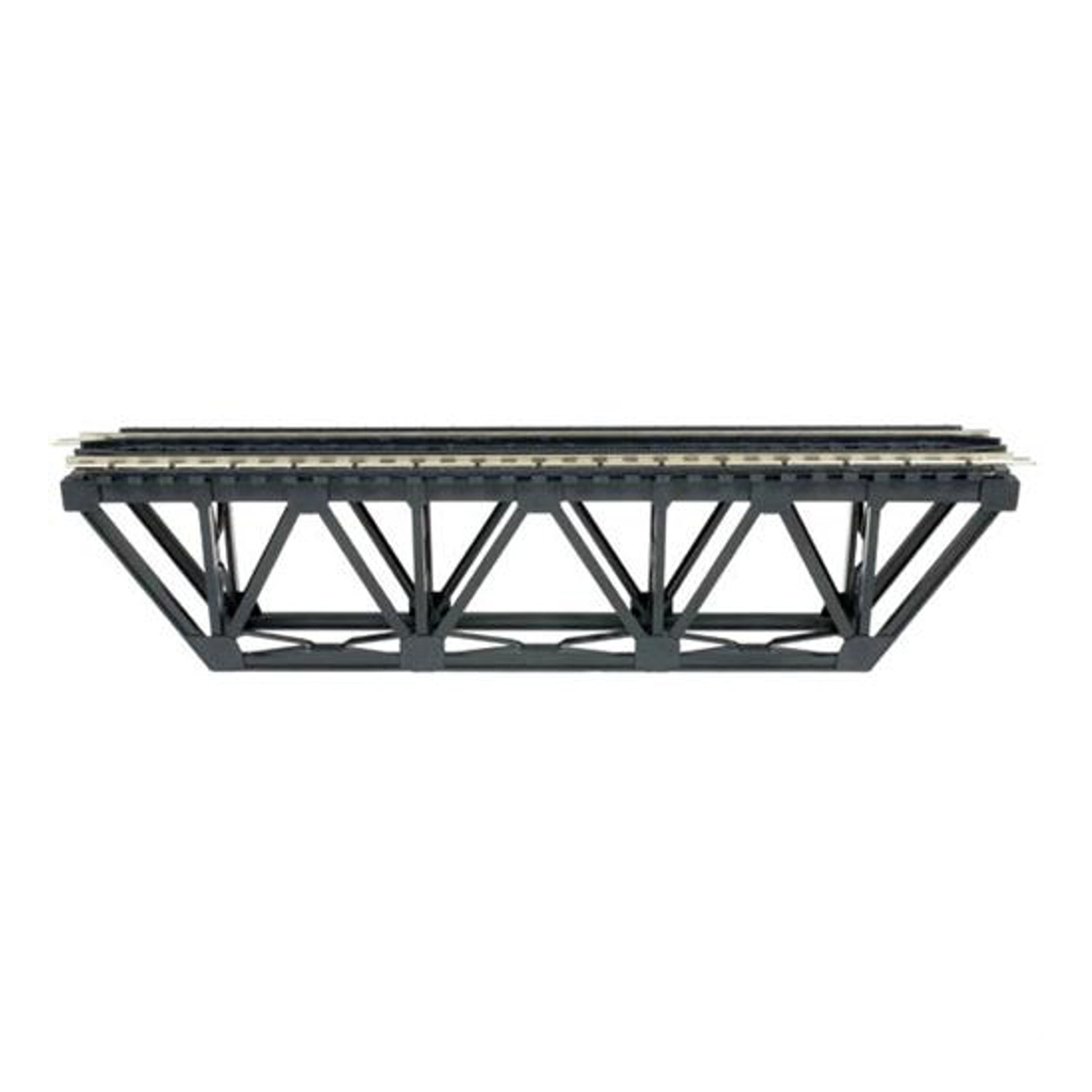 The Atlas HO Scale Code 100 65' Deck Truss Bridge is based on a commonly used bridge used across North America. The bridge is supplied with Code 100 nickel silver rail on its deck surface and is compatible with all Code 100 track. For track planning purposes it is 9" long - the same size as a standard piece of straight Snap Track.