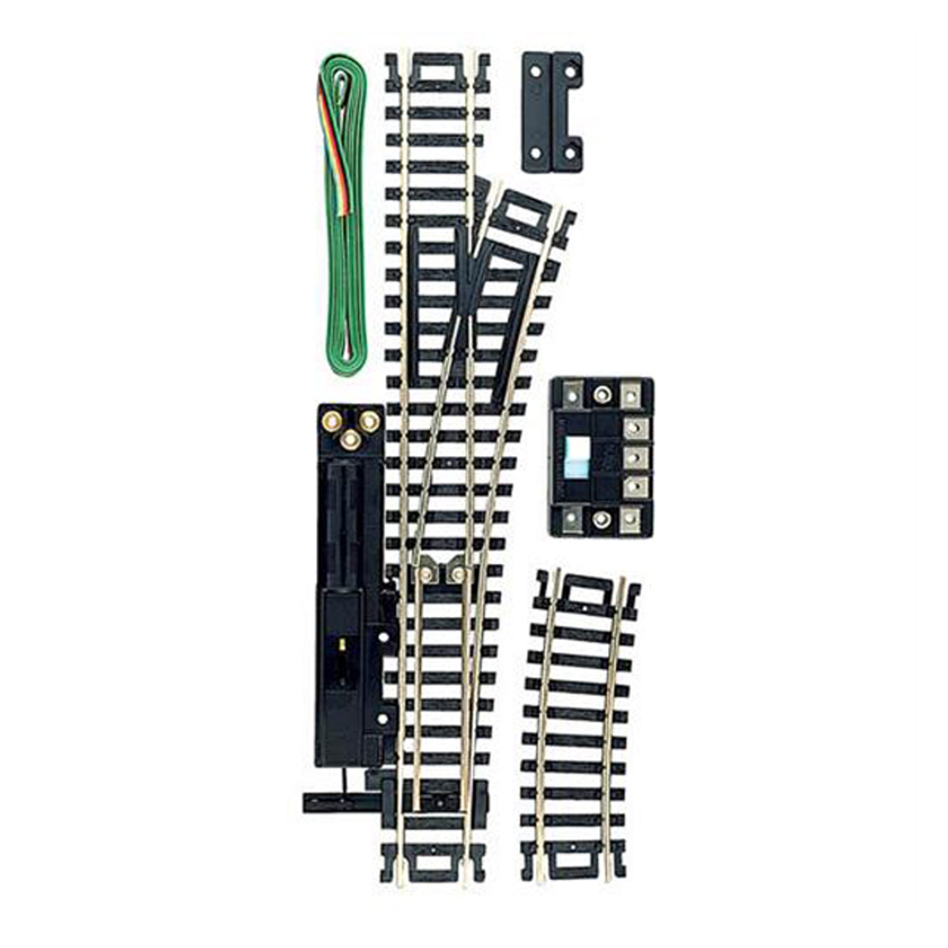 These switches have a remote control switch machine attached so you can wire the switch to be "thrown" (changing the direction of the rail), from your control panel, rather than from the switch itself. Comes with a 1/3 18" radius section, making the curved leg equal to an 18" radius section. To add a passing track and siding, simply replace a 9" straight section. When replacing an 18' radius curved section with an Atlas Snap-Switch, add a 1 1/2" straight section to the opposite side."