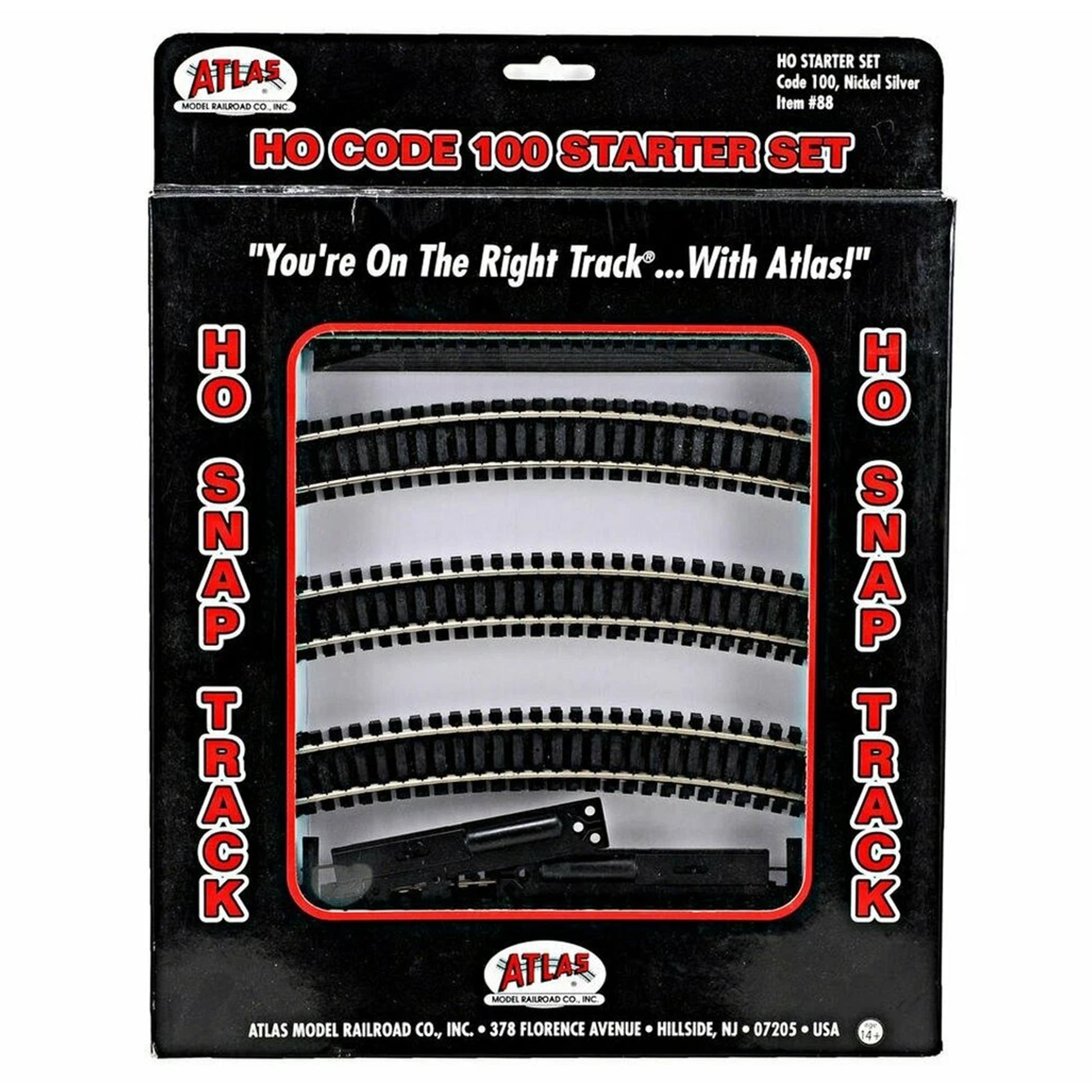 HO Code 100 Set-Black ties, nickel silver rail. The HO Track Starter Set is a snap for beginners to assemble. Each contains enough Snap-Track and components to assemble a 38" x 56" oval layout with passing siding (16 pieces of track plus two manual switches). Easily expandable as your skill level advances. Complete assembly instructions provided. Trains and power pack sold separately.