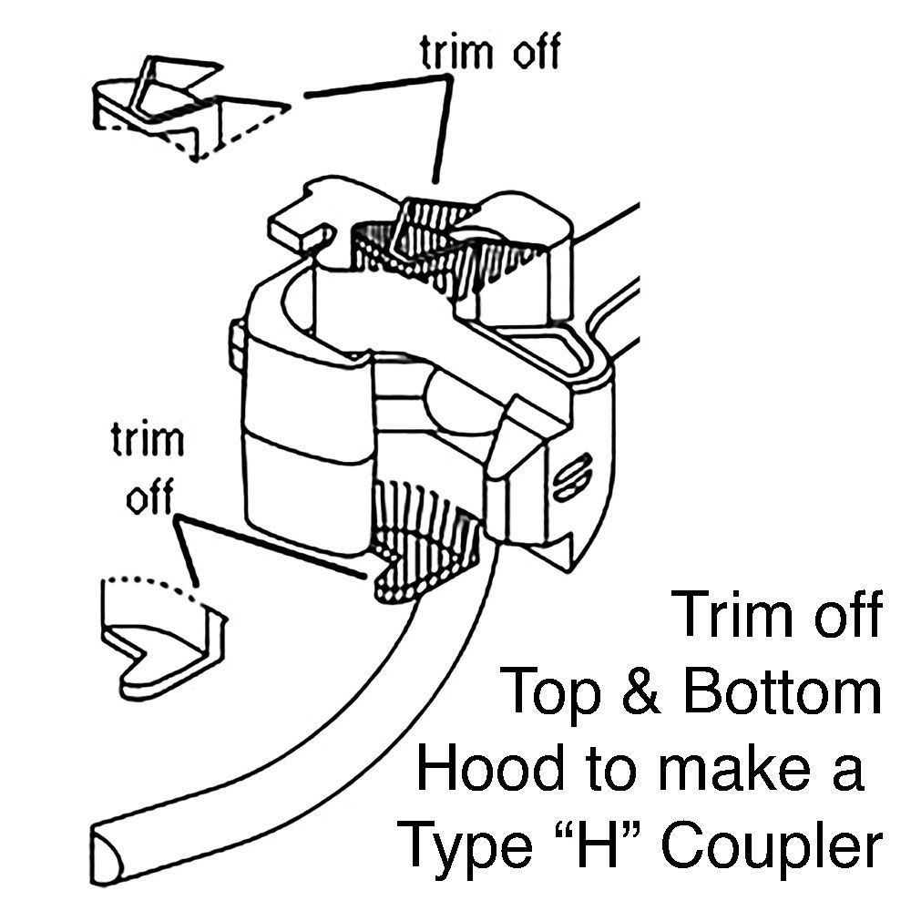 The #118 SF Shelf Coupler features shelves that actually work and can be easily modified to look like the type "F" or "H" passenger car coupler. Trim off the top hood to make a type “F” passenger car coupler. Trim off the top & bottom hood to make a type “H” passenger car coupler. The couplers can be mounted in the supplied #242 Gearboxes or Kadee® #213, #232, and #234 Gearboxes or directly into most manufacturer's molded-on gearboxes.