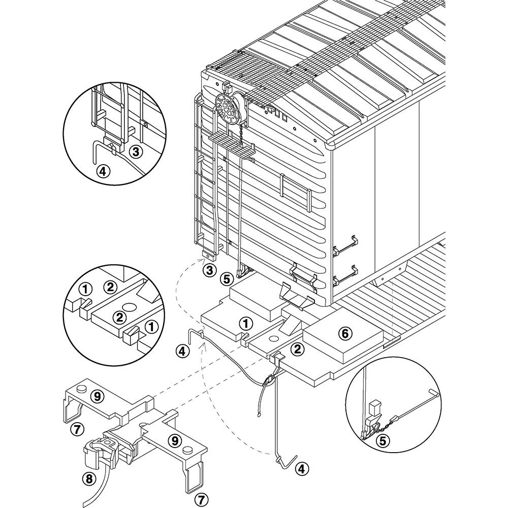 Fits all Kadee® 40 foot PS-1 boxcars and all 50 foot PS-1 boxcars, with the exception of 50 foot PS-1 cushion underframe boxcars.