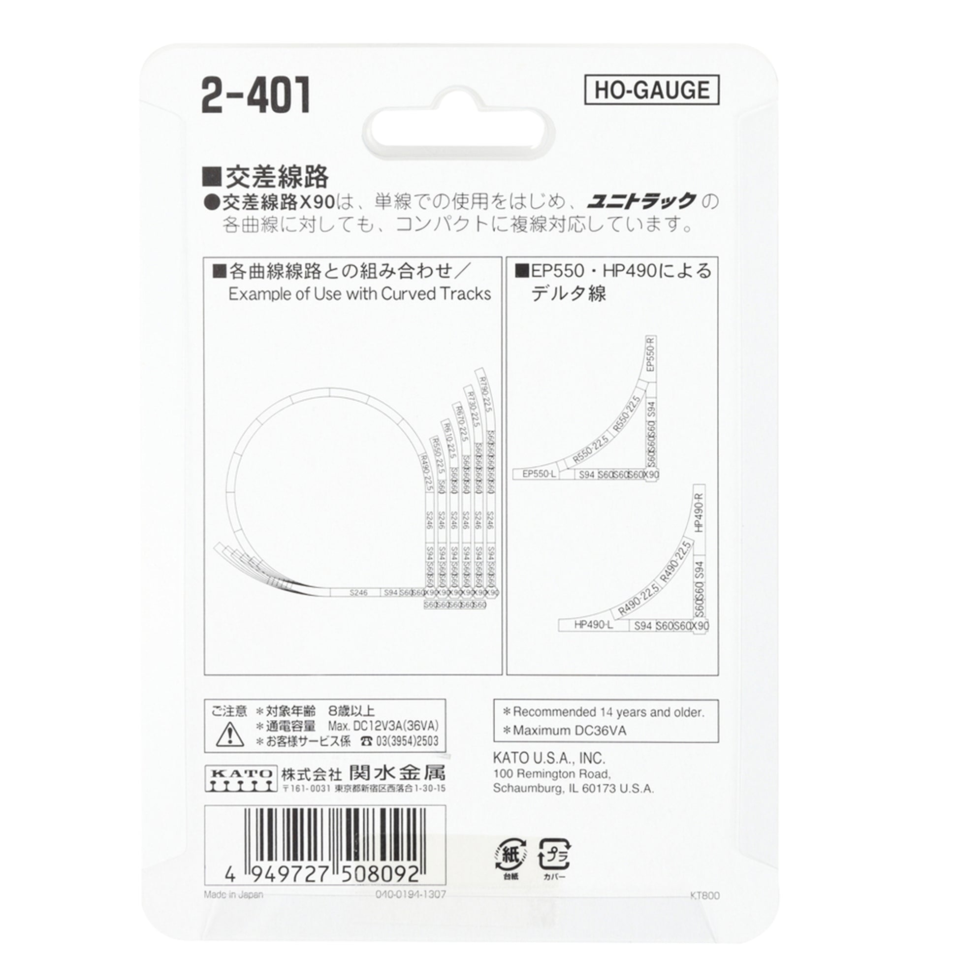 Kato HO 2-401 Unitrack Code 83 90-Degree Crossing X Track 60mm (2-3/8")