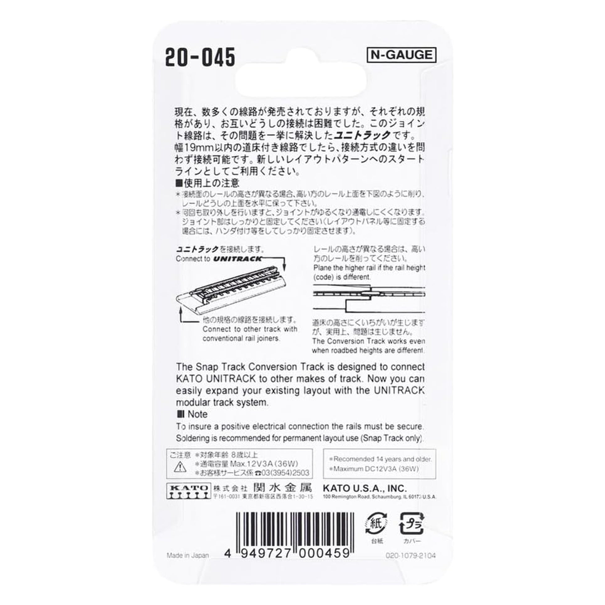 Kato N 20-045 Unitrack Snap Track Conversion Track 62mm (2-7/16"), 2pc