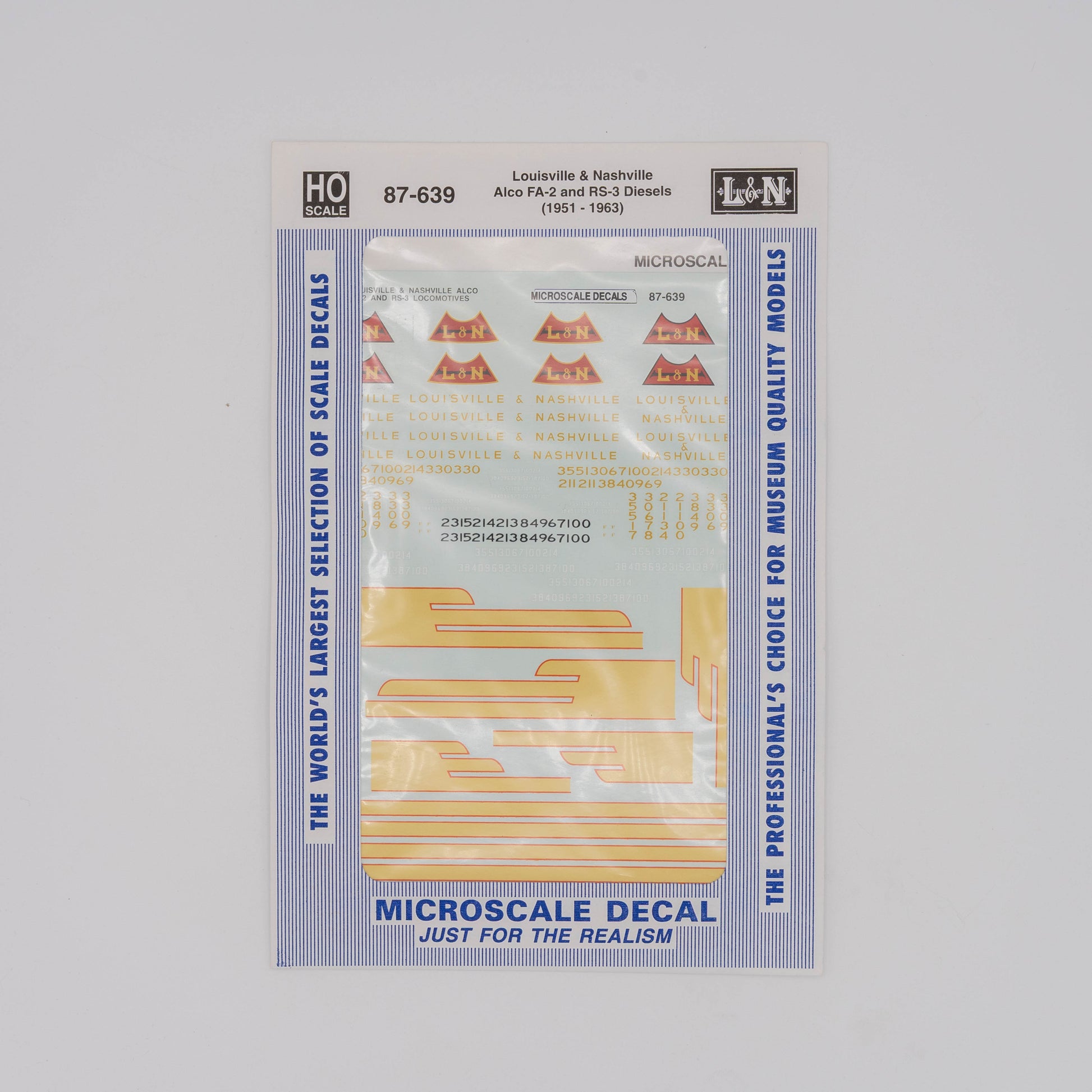 Microscale HO 87-639 Louisville & Nashville Decal, Alco FA-2 and RS-3 Diesels (1951-1963)
