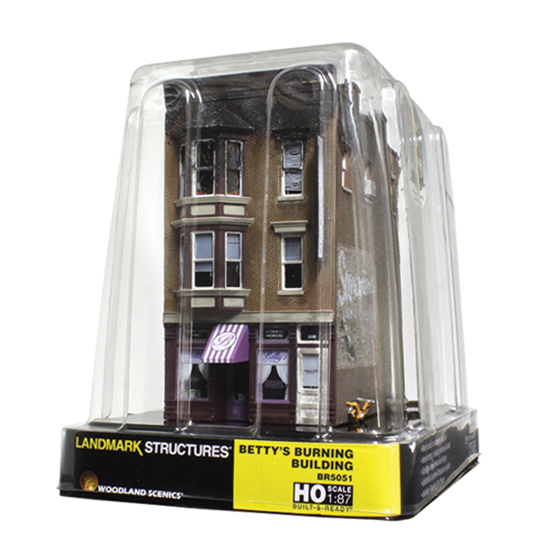 Woodland Scenics Landmark Structures BR5051 HO Betty's Burning Building - Assembled w/ LED Lighting and Flickering Fire Effects