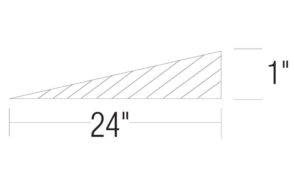 4/pkg - each piece elevates from 0 - 1" (0 - 2.54 cm) within 24" (60.96 cm) and measures 2 1/2" w x 24" l (6.35 cm x 60.9 cm)