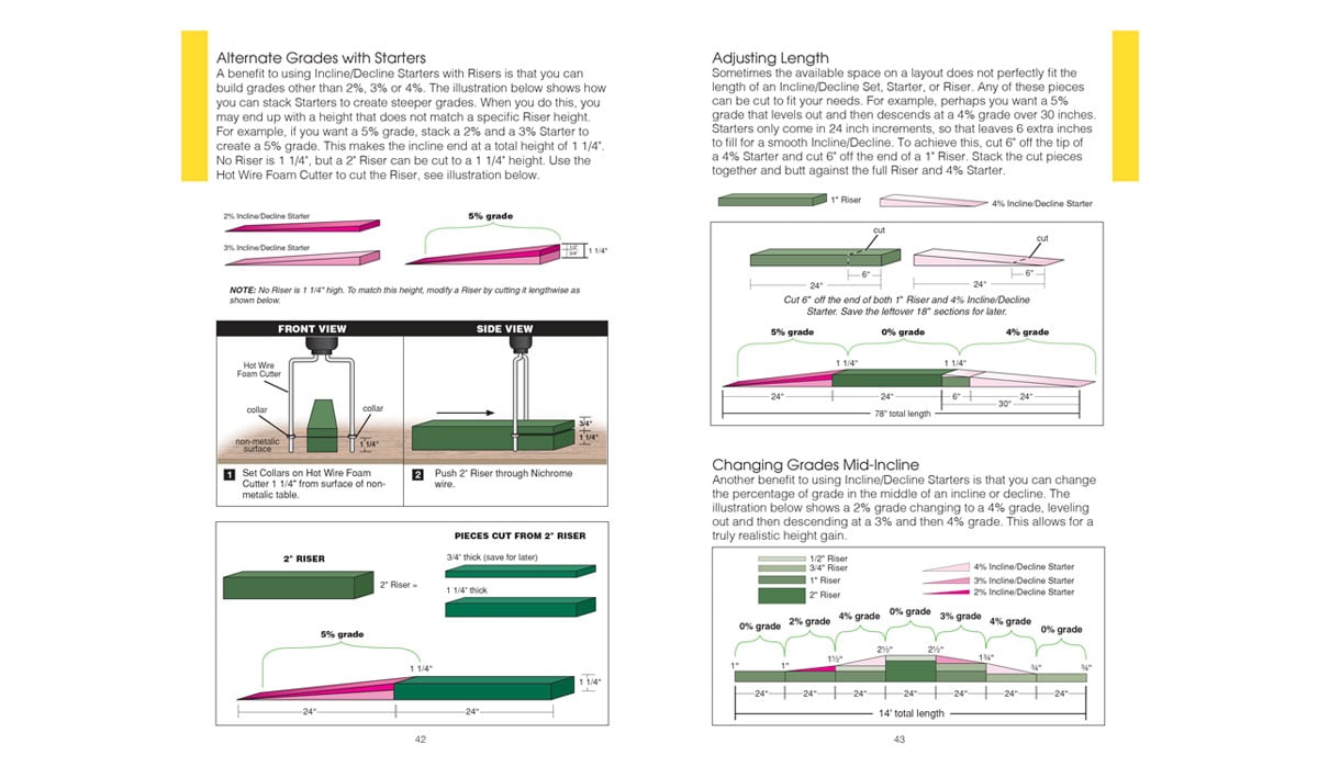 Incline/Decline Sets are the ideal way to alter the elevation of your track quickly and easily. Each set includes the high-density foam pieces necessary to raise or lower the elevation of your track. Incline/Decline Sets come in either 2%, 3% or 4% grades.